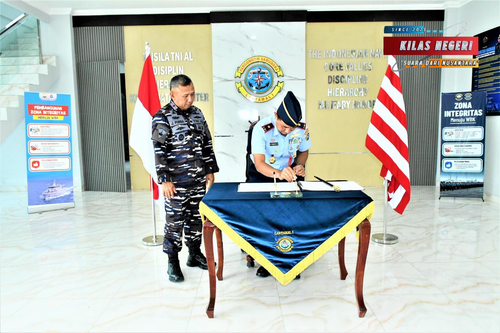 TNI AL, Belawan,Kilas Negeri – Komandan Pangkalan Utama TNI Angkatan Laut I (Danlantamal I) Brigjen TNI (Mar) Jasiman Purba, S.E., CHRMP., menerima Courtesy Call (CC) dari Komandan Kosek I Medan Marsekal Pertama TNI Imam Subekti, S.T., M.IR., bertempat di VIP Room Mako Lantamal I, Jalan Serma Hanafiah No.01 Belawan, Sumatera Utara, Rabu (14/5/2025).