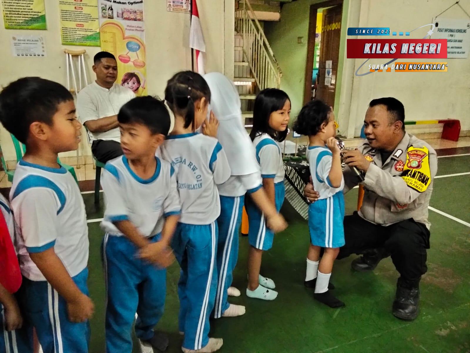 Jakarta Timur, Kilas Negeri – Dalam upaya menanamkan kesadaran hukum dan keamanan sejak usia dini, Bhabinkamtibmas Kelurahan Utan Kayu Selatan, Bripka Syarif H., melaksanakan kegiatan edukasi kepolisian kepada anak-anak PAUD Dahlia di RW 01, Rabu (28/5/2025). Kegiatan ini merupakan bagian dari implementasi Program Mantap dan Taktis Kapolres Metro Jakarta Timur Kombes Pol. Nicolas Ary Lilipaly.