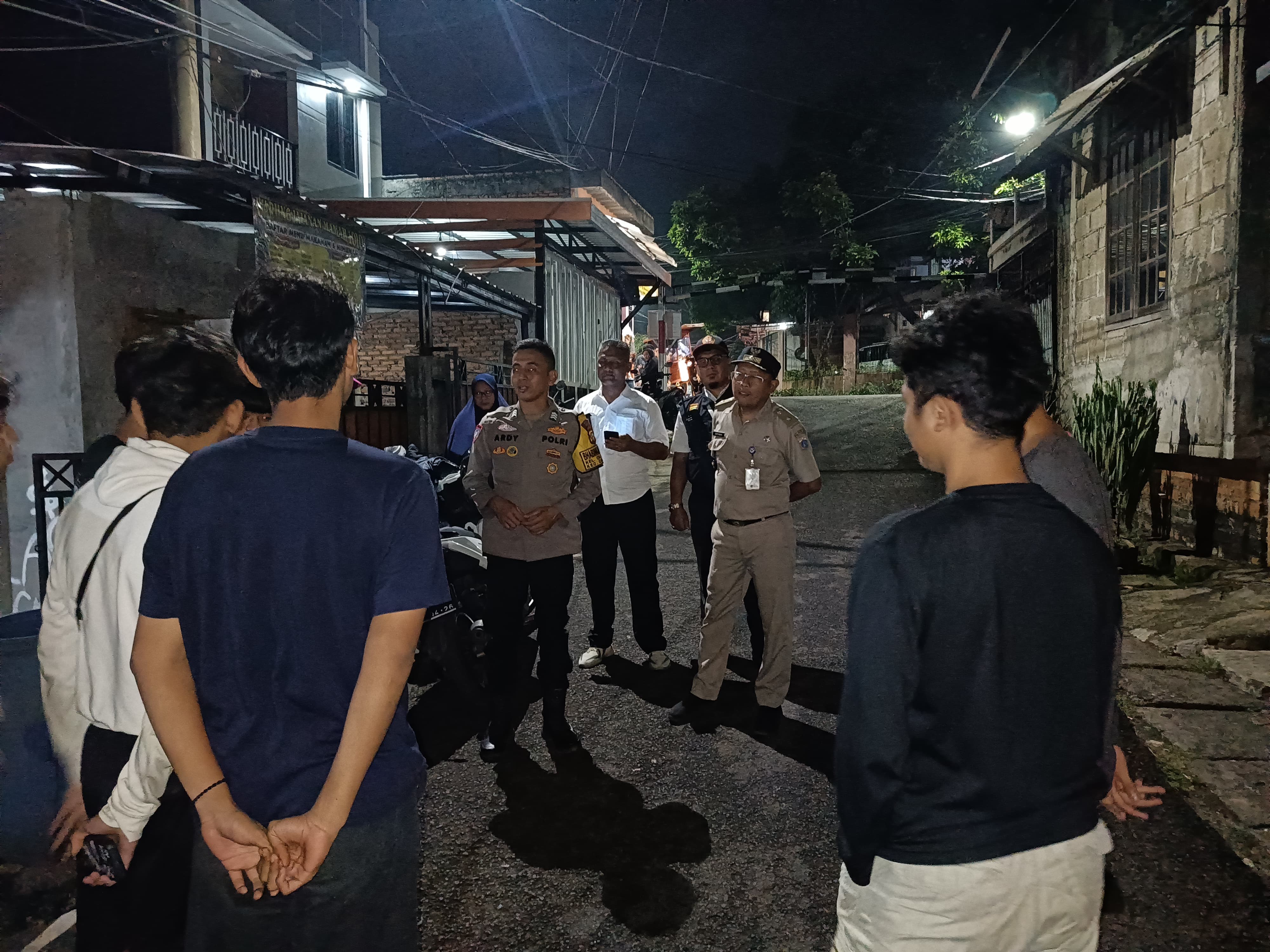 Dalam giat ini, Brigadir Ardy bersama unsur kelurahan memberikan pembinaan langsung kepada para remaja yang masih berkumpul hingga larut malam.