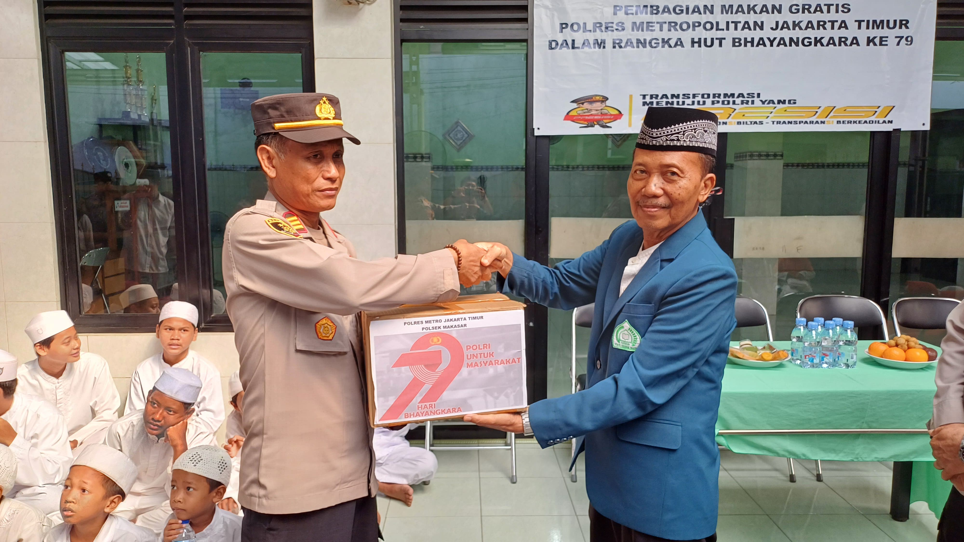 Dalam kegiatan tersebut, Polres Metro Jaktim membagikan 200 paket makan siang gratis, air mineral, serta 50 paket sembako kepada para siswa dan masyarakat sekitar yayasan.