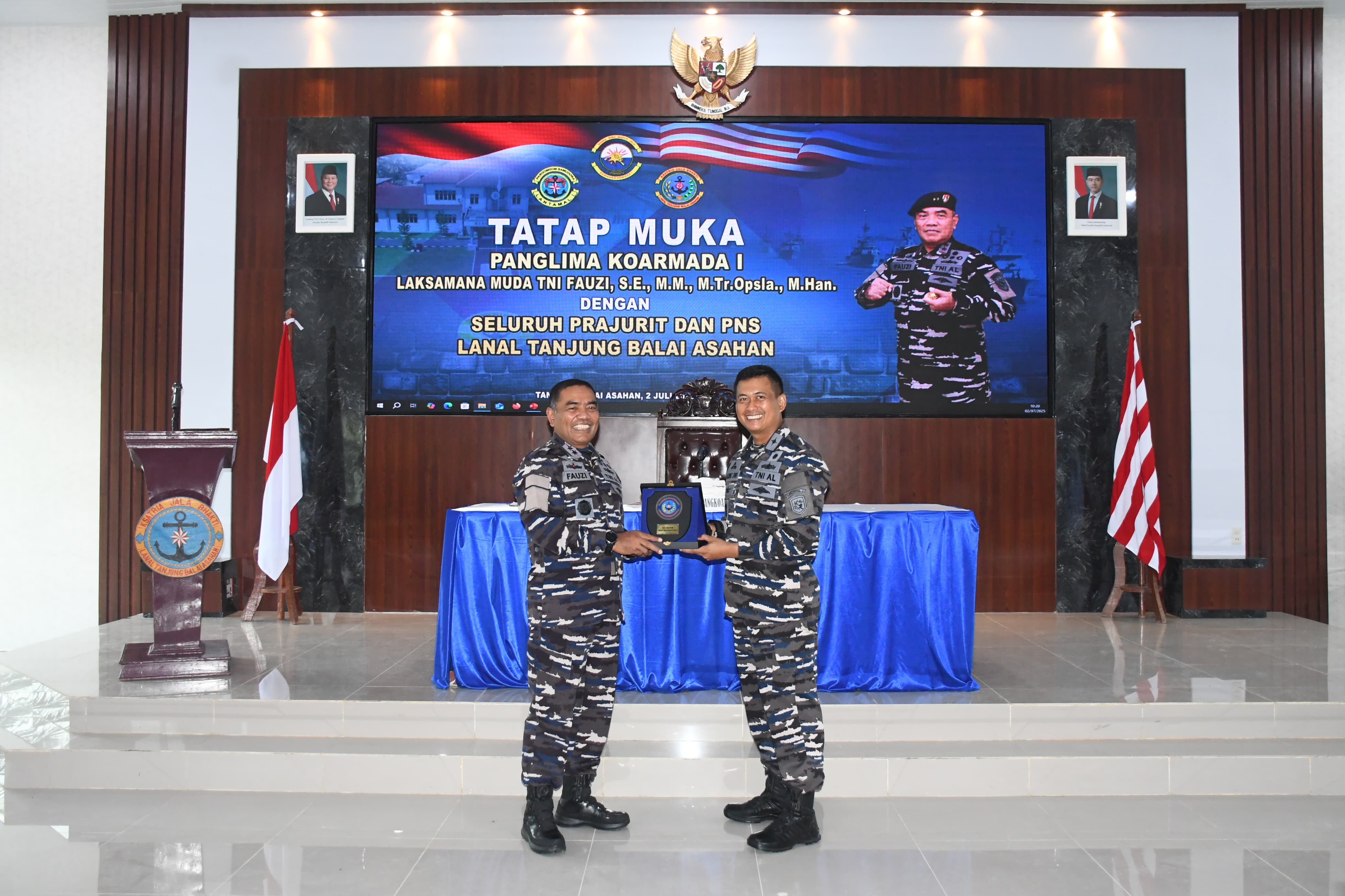 TNI AL, Tanjung Balai, Kilas Negeri – Panglima Komando Armada I (Pangkoarmada I) Laksda TNI Fauzi, S.E., M.M., M.Tr. Opsla., M.Han., didampingi Komandan Lantamal I Brigjen TNI (Mar) Jasiman Purba, S.E., CHRMP., melaksanakan kunjungan kerja ke Markas Komando Pangkalan TNI AL (Lanal) Tanjung Balai Asahan, Rabu (2/7/2025).