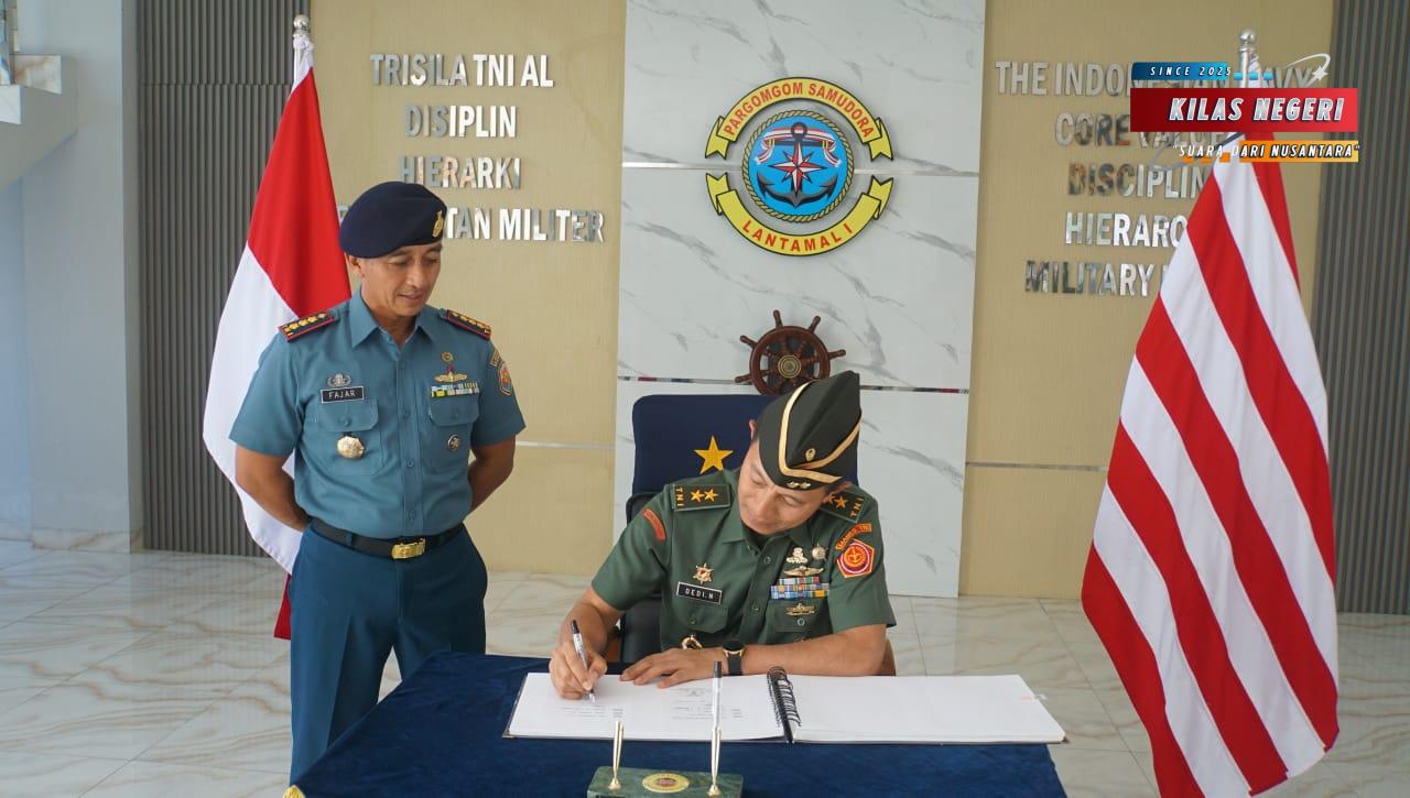 TNI AL, Belawan, Kilas Negeri – Komandan Pangkalan Utama TNI Angkatan Laut I (Danlantamal I) Brigjen TNI (Mar) Jasiman Purba, S.E., CHRMP., yang diwakili Wadan Lantamal I Kolonel Laut (P) Fajar Tri Rohadi, S.E., menerima kunjungan kerja Perwira Staf Ahli Tingkat III Bidang Komsos Panglima TNI Mayjen TNI Dedi Nurhadiman, S.I.P., beserta rombongan, bertempat di VIP Room Mako Lantamal I, Jalan Serma Hanafiah No.01 Belawan, Sumatera Utara, Senin (14/07/2025).