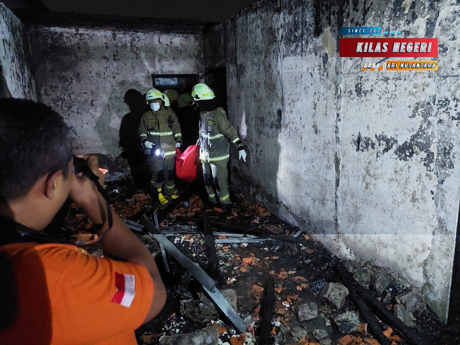 Dalam proses itu, petugas menemukan satu jasad perempuan yang telah meninggal dunia di dalam kamar. Korban diketahui bernama Dwi Hariningsih (55), seorang ibu rumah tangga yang menderita sakit stroke dan tidak sempat menyelamatkan diri saat kebakaran terjadi. Jenazah korban kemudian dievakuasi ke RS Polri Kramat Jati untuk dilakukan otopsi.