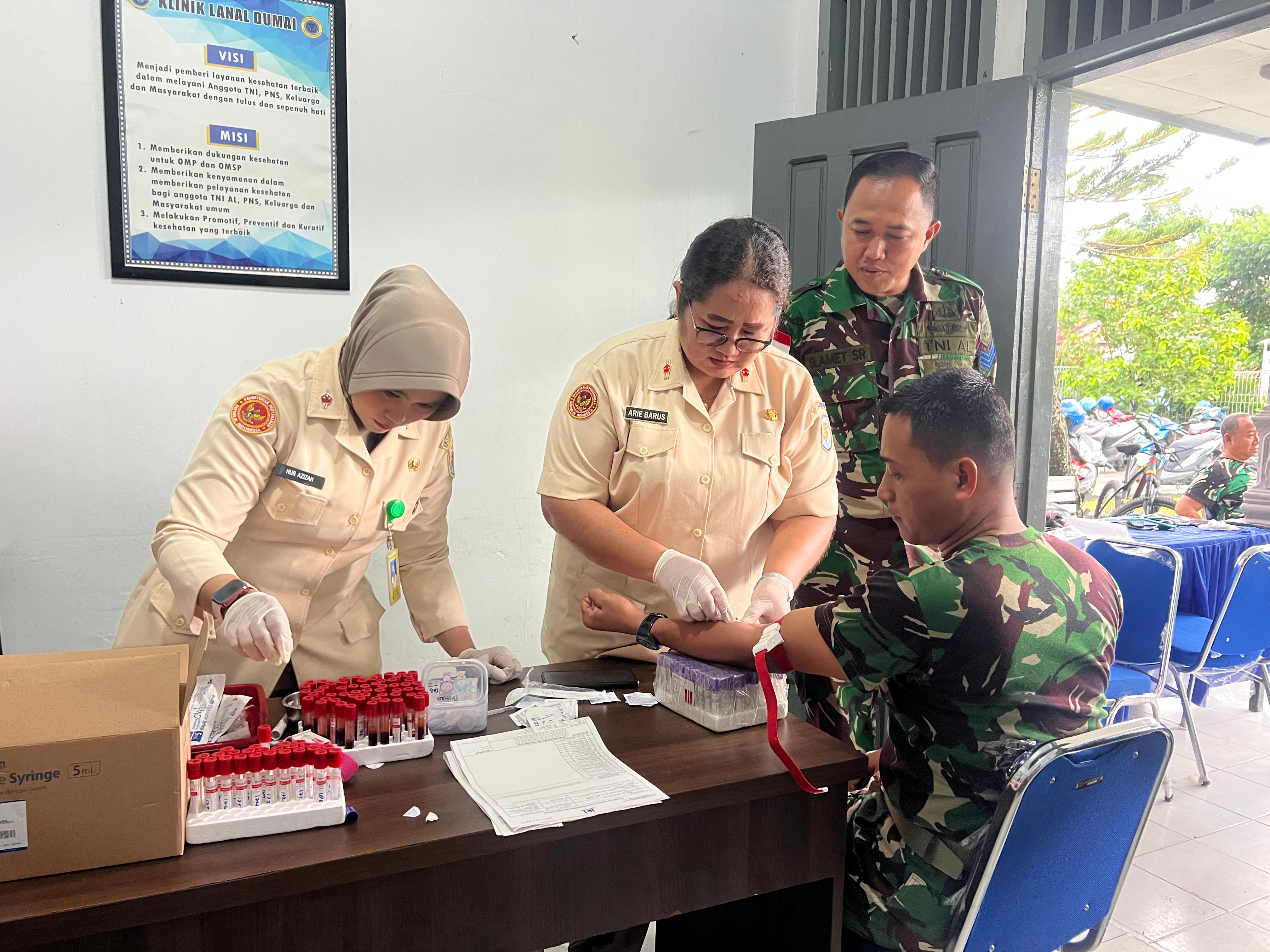 TNI AL, Dumai, Kilas Negeri – Pangkalan TNI Angkatan Laut (Lanal) Dumai menggelar Uji Pemeriksaan Kesehatan (Urikes) rutin bagi Prajurit dan Pegawai Negeri Sipil (PNS) di Balai Pengobatan Mako Lanal Dumai, Rabu (30/7/2025).