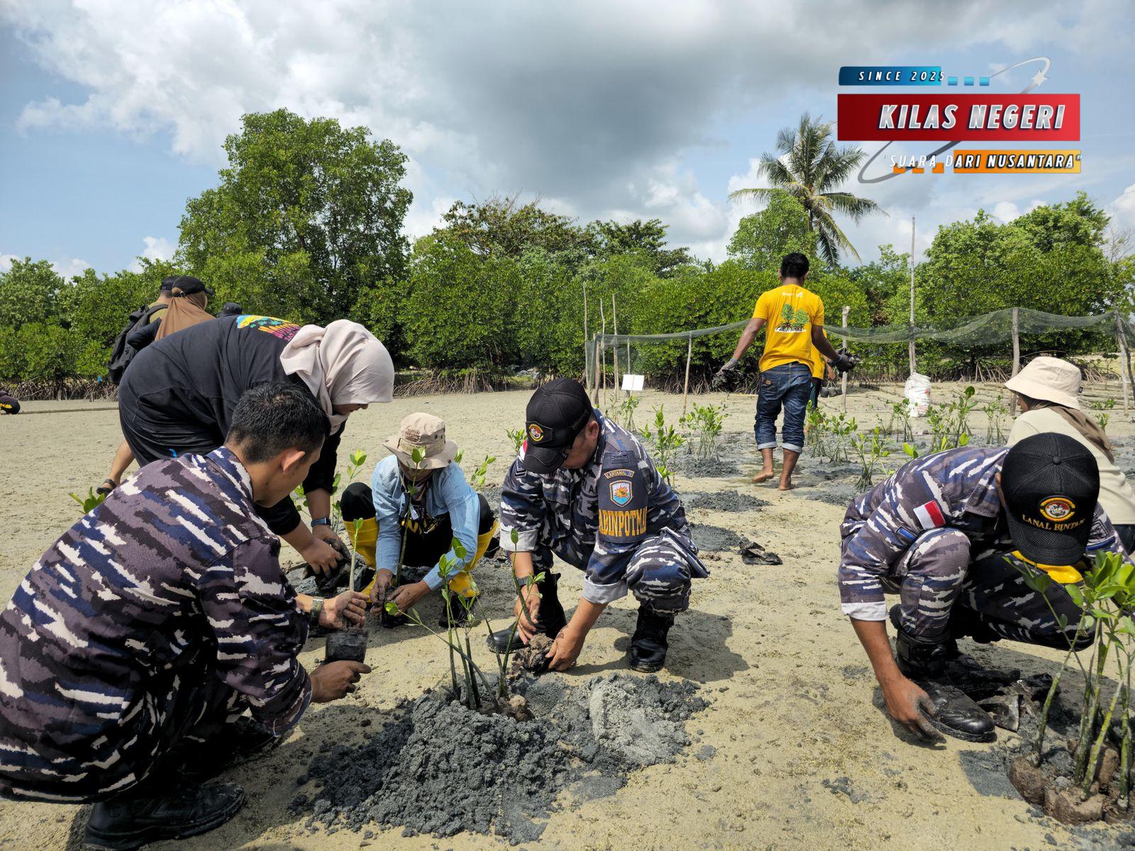 TNI AL, Bintan, Kilas Negeri – Prajurit Lanal Bintan turut serta melaksanakan kegiatan Penanaman 15.000 Bibit Mangrove (Rhizophora Stylosa) pada Program Tanggungjawab Sosial Lingkungan PLN Peduli Pemulihan Ekosistem Mangrove Berakit yang diselenggarakan oleh Yayasan Ecology Kepulauan Riau, bertempat di Pantai Penginam Berakit, Bintan, Kamis (31/07/2025).