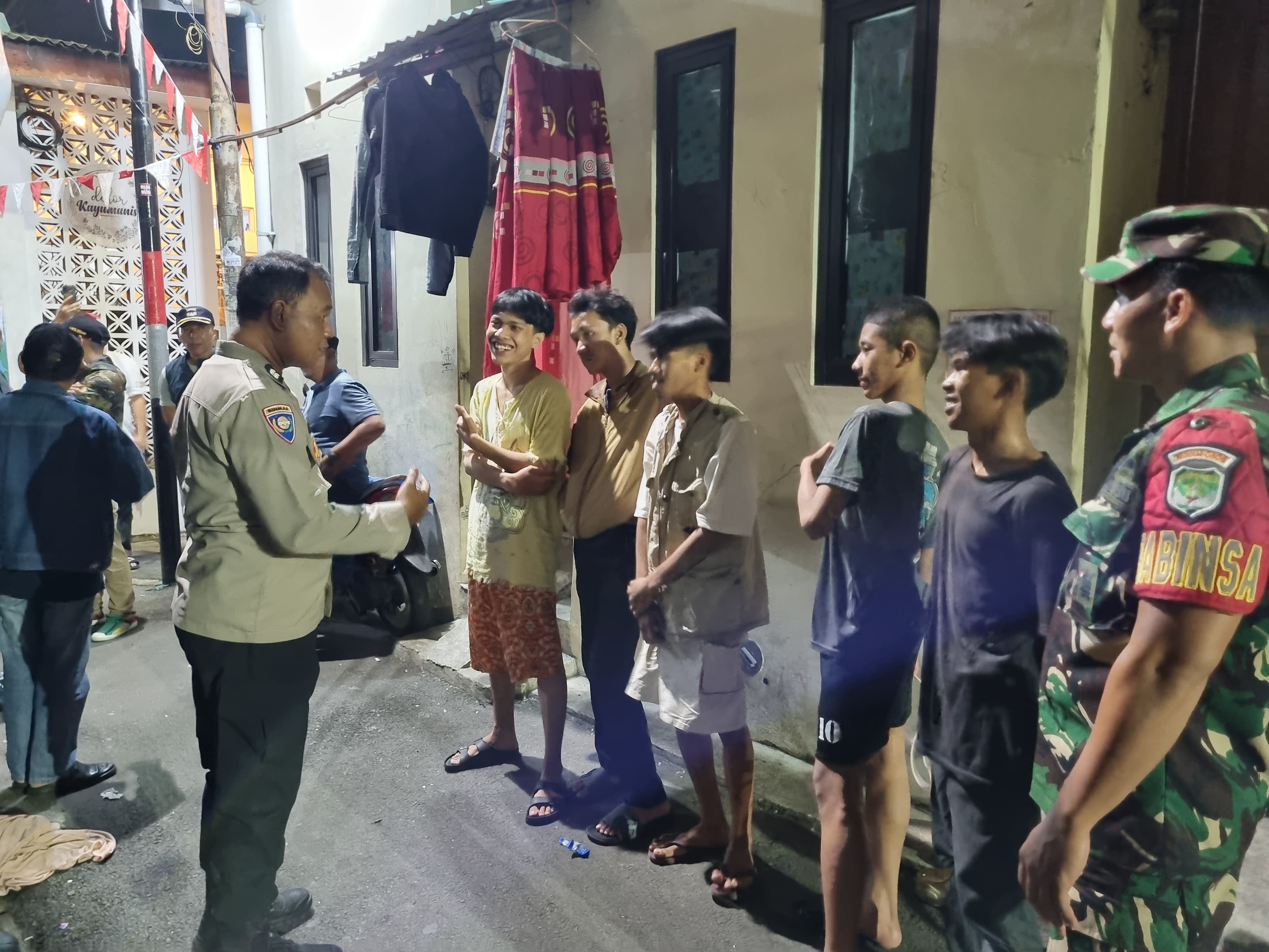 Bhabinkamtibmas Kelurahan Kayu Manis, AIPTU Iwan Fajar, terlihat menyapa para remaja yang masih berkumpul larut malam.