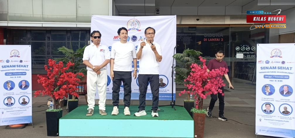 Jakarta, Kilas Negeri – 7 Desember 2025 – Puluhan orang yang berasal dari organisasi Gerakan Pendidikan Indonesia Baru (GPIB) , Media Independen Online (MIO) Indonesia, Ikatan Penulis dan Jurnalis Indonesia (IPJI), Asosiasi Serikat Pekerja Indonesia (Aspirasi) dan Aliansi Perdagangan dan Industri Kreatif Indonesia (APIKI), mengikuti senam sehat di Transmart Cempaka Jakarta Pusat, pada Minggu pagi, 07 Desember 2025.
