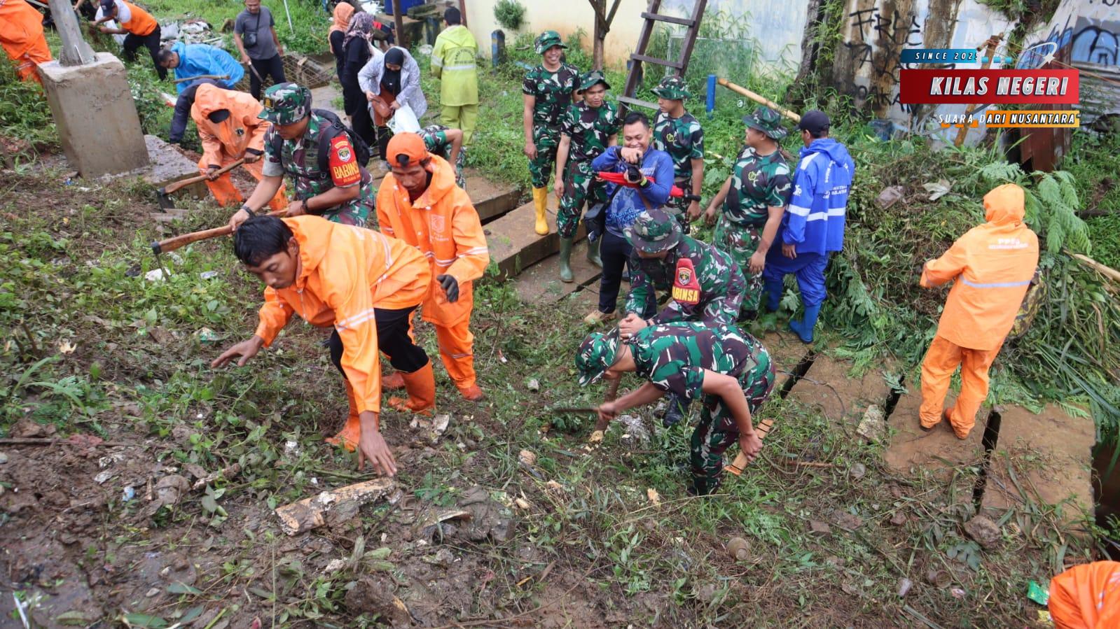 Tindak lanjut Gerakan Indonesia Asri (Aman, Sehat, Resik dan Indah) sesuai Instruksi Presiden RI Prabowo Subianto, 600 personel gabungan TNI-Polri, Pemda Jaksel dan masyarakat gotong royong membersikan bantaran Kali Ciliwung di Jalan Inspeksi Kali Ciliwung RW 07, Kelurahan Rawajati, Kecamatan Pancoran, Jakarta Selatan, Minggu (8/2/2026) pagi.