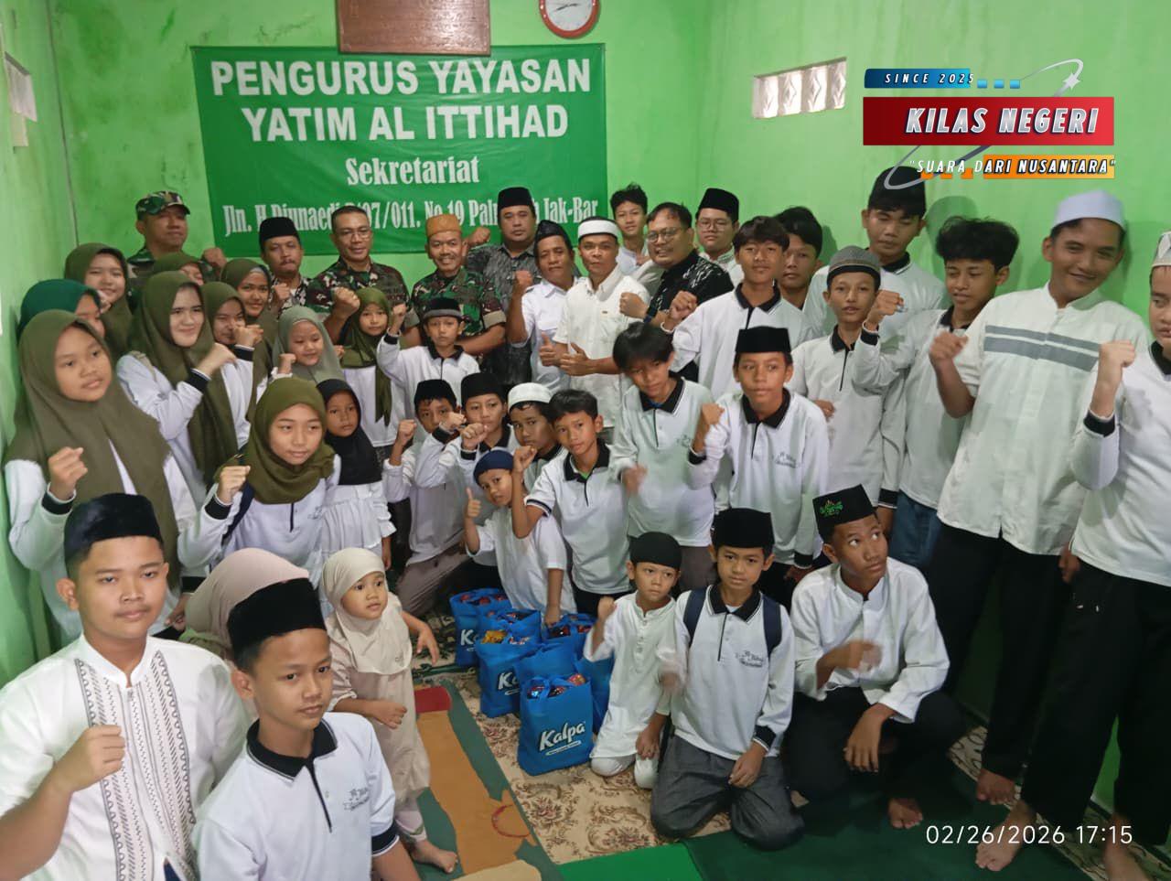 Penrem 052 – Jakarta Barat, Kilas Negeri – Wujud nyata perhatian dan kepedulian terhadap sesama kembali ditunjukan Komandan Korem 052/Wijayakrama, Brigjen TNI Faizal Rizal, S.I.P., di bulan suci Ramadhan 1447 H. Melalui jajaran, Danrem 052/Wkr memberikan santunan dan bingkisan kepada puluhan anak yatim di Yayasan Yatim Al-Ittihad Palmerah, Kamis sore (26/02/2026).