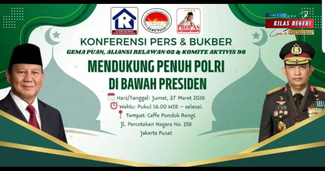 Jakarta – Relawan Gema Puan bersama Aliansi Relawan 02 dan Propas menggelar konferensi pers yang dirangkaikan dengan kegiatan buka puasa bersama di Cafe Pondok Rangi, Jakarta Pusat, Jumat (27/3/2026). Kegiatan ini menjadi momentum untuk menyampaikan pernyataan sikap bersama terkait berbagai isu yang berkembang mengenai institusi Kepolisian Republik Indonesia (Polri).